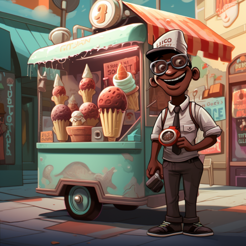 the ice cream seller's car is parked in our park parking lot and selling ice cream, realiatic, photography, --ar 9:16