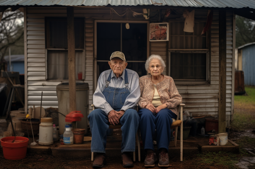 picture of two elderly american couple sitting outside their house --ar 3:2