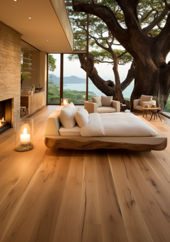 Breathtaking ultra realistic glamor shot of A Luxurious sea view hotel room, An off-white vervordt plaster Haven, Raw Oak Wooden Minimal Floor, eLEGANT DOUBLE BED, Desk and sofa, Luxurious Warm Wall lights With Wide-Angle View, High-End Eclectic Luxury, Wide-Angle View, Travertine Details, Unlikely Juxtaposition, In the style of Martin Scorsese and Quentin Tarantino, photographed by Janusz Kamiński, colors by Won Kar Wai, Design by Geof Darrow and Katshuhiro Otomo, inspired by Daft Punk and Kanye West and Travis Scott aestethics and the style of Hype Wiliams and Dave Meyers, bold beautiful details, epic scene, epic composition, epic perspective, ultrarealistic, hypermaximalist, bold, 90s, shot on 70 mm, 250 mm lens, long exposure, hyper realistic photography, matte, film grain, noise, rich colors, high contrast, long exposure, outdoor professional photography, detailed, elegant, depth of field, 24K, rendered, natural lighting, 2024 trending colors, modern colors, trendy colors, stylish colors, pantone trending colors 2024, vibrant colors, epic cinematic lighting, no blur, brightly lit, bright cinematic lighting, bright lighting, editorial photography, hyper maximalist, vibrant colors, ultra-detailed, ultra wide angle, epic scene, epic perspective, epic composition, wide shot, epic cinematic lighting, very high detail, hdr, cinematic lighting, insanely detailed and intricate, elegant, ornate, hyper realistic, super detailed, intricate detail, HDR, extremely detailed, perfectionism, immersive, photoshopped, post-production, epic scene, Epic composition, epic perspective, epic cinematic lighting, photoshopped, super resolution, post-production, maximum detail, best image quality, --chaos 69 --s 530 --ar 21:30 --v 5.2