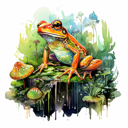 Frog in the forest, alcohol ink. transparent background. --aspect 16:9