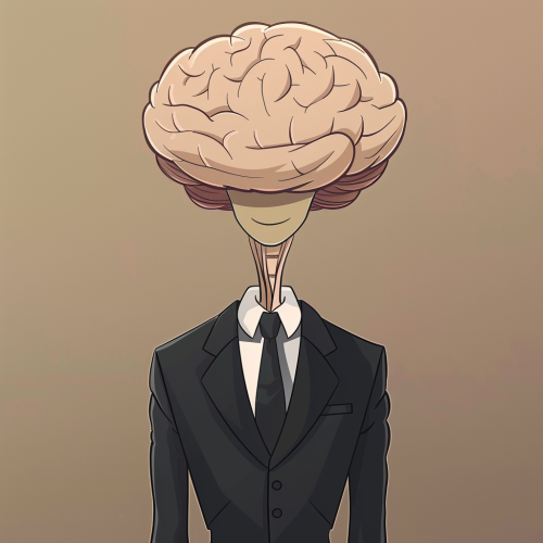 cartoon image of a well dress man in a classy suit, instead of a head there is a brain