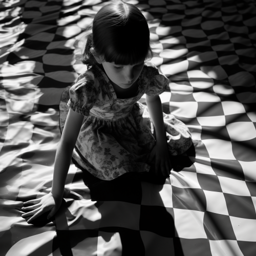 a children Moiré patterned shadows, Curve upon her form in shallows, Their depth, it bellows. --s 50 --v 5.2