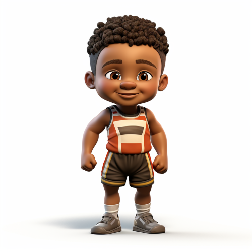 an adorable 3d cartoon style little African American brown eyed boy wrestler wearing a wrestling singlet. Little boy wearing a wrestling singlet and wrestling ear guards. no shadow. white background