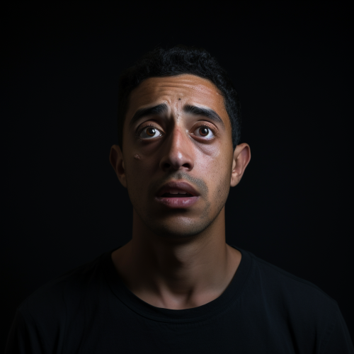 Front facing portrait of person staring at iPhone in horror, face illuminated by screen glow, wide-eyed expression of shock, mouth slightly open, instant of realization, candid emotional photography, cinematic lighting, 85mm lens, photorealistic --ar 4:5 --v 6.0