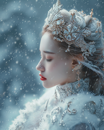 happy kawaii snow princess::1 icy whimsical dress, fantasy white, pastel white and copper, vogue fashion-shoot hyper realistic, sharp detail, intricate detail, ultra photo-realistic. The image is skillfully captured using a Sony A7R IV mirrorless camera, renowned for its exceptional 61-megapixel resolution and impressive detail rendition. The camera is paired with a FE 85mm f/1.4 GM lens. The settings used for this captivating image are an aperture of f/5.8, ISO 100 for optimal image quality and minimal noise, and a shutter speed of 1/125 sec to ensure a crisp, steady capture. The composition is expertly framed. 4K, Cinematic, natural light.::1 --ar 4:5 --v 6.0