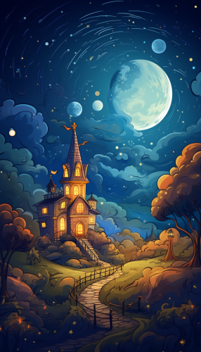 beautiful background for kids bedtime chronicles with random fable dream scenario with a few lines of text, HQ, 4K, colorful, simple with --ar 4:7