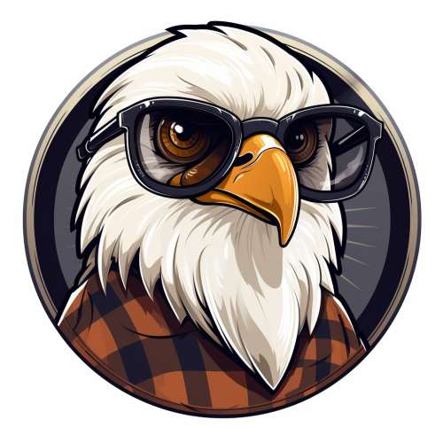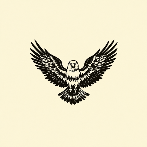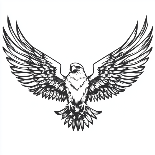 company logo of bald eagle, facing forward, wings spread, Vector, Simple Line Drawing, Minimalistic, U.S. Flag in Background, Thick Black Outline, Patriotic, Masculine