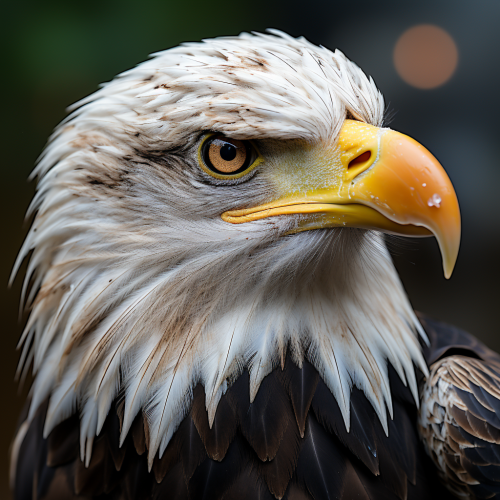 Bald Eagle, portrait, shot on a sony a7 iv camera, rich colours, ultra clarity, exceptional sharpness, profile view, looking down, national geographic, hyper realisitc, wildlife, photography --v 5.2 --s 750