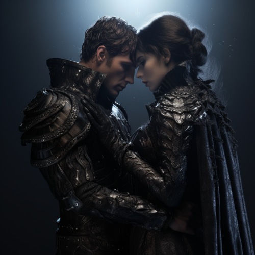 Beautiful Gothic Male and Female dressed in leathers and lace with black cape embracing the darkness of their souls 512K HD Full Detail