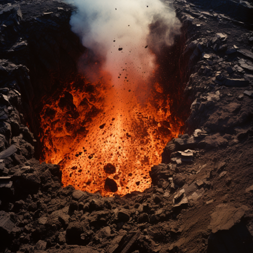 A chubby, stubby man falling into a pool of molten lava, pushed by a terrifying lava monster --chaos 5