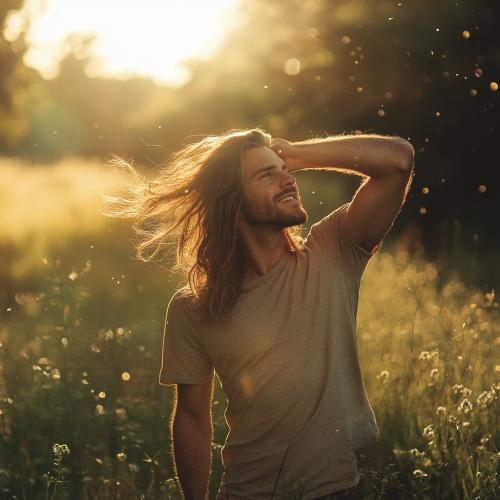 A Man Walking Through Sunlit Park Afternoon