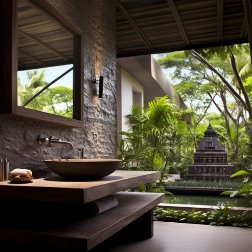 Interior design photography, bathroom in the style of Art Deco, zebra print Washing Basin and Black marble bathtub, opulent details with black marble accents, opaline glass light fixtures, rich colors, opulence, large format film camera, Fujifilm Pro medium format Kodak Portra 800 film, SMC Takumar 35mm f/2.4 lens. This photo was taken in the style of Slim Aaron using his Leica M6 camera. Kodak colors, The photography is in the style of Architectural Digest. in the 80s decor magazine style. --ar 3:4 --style raw --v 6.0