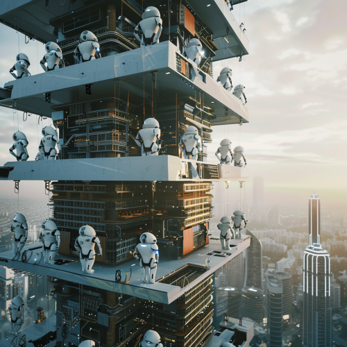 AI powered robots constructing a five-story building autonomously in not so distant future