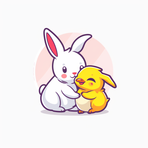 a icon for a logo, app logo, female rabbit & boy baby chick, cute modern logo, pose