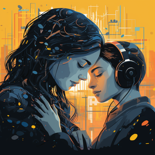 Design an illustration that portrays AI as a bridge between technology and emotions, emphasizing its role in fostering understanding and empathy.