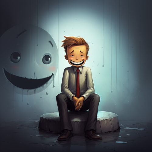 Sometimes, even though a person seems very happy, he may actually have many problems. Explain this with a cartoon.