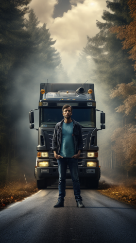 export on road with modern truck, epic, professional picture, 8k --ar 1:1 --v 6.0