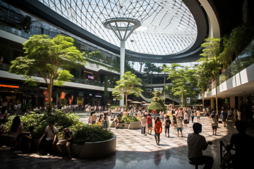 A low angle wide shot of modern eco-friendly architecture in a green urban environment, featuring solar panels, vertical gardens, and energy-efficient windows, emphasizing sustainability and harmony with nature, under soft natural daylight, shot with a Fujifilm GFX 100S, wide angle lens, vibrant colors with a touch of green and blue tones