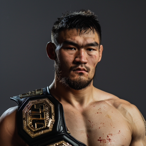 Imagine a tense Muay Thai match under the bright lights of a crowded arena. Two fighters, muscles tense and glistening with sweat, circle each other with fierce determination. Suddenly, one fighter leaps forward with explosive power, driving a flying knee into the chest of his opponent, whose face contorts with the impact. The crowd gasps as the dramatic scene unfolds, capturing the raw emotion and adrenaline of the fight,--ar 16:9 --v 6.1 --style raw