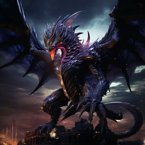 Bahamut from Final Fantasy X, Bahamut is a dragon humanoid. he has sharp claws, and a muscular build. It has large, elaborate wings that are a mix of dark violet, black, and dark blue, with a circular, ornate golden ring behind its head. make it look like a humanoid, bright eyes, The photo is hyper realistic and cinematically hyper detailed,ultra 3d rendering, in the style of unreal engine, hyper rendering, 3D render, 32k uhd, cinematic portrait , best sharpness, ultra realistic, the photo is taken with a Canon Eos r50 --v 5.2