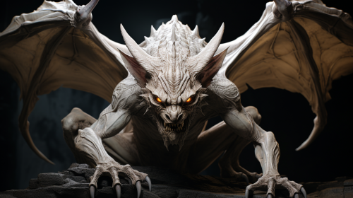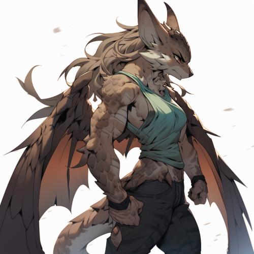 Anthropomorphic chupacabra with back quills and bat wings, female, large brawler, muscular, gargoyle --s 250 --niji 5