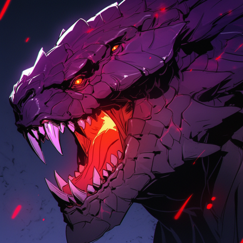 kubrick stare, dragonborn, red eyes, purple scales, dark atmosphere --ar 1:1 --niji 5