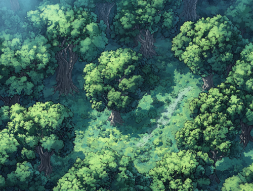 A tiny lonely mountain peak in a vast temperate forest. The trees are massive, old, thick, green, and the forest is seemingly impenetrable, with no clearings, and many different kinds of trees reaching to the horizon. The forest has a mystical energy about it. A tiny mountain peak appears in the center. The mountain is colored red by a setting sun, as are the clouds. Fantasy RPG setting, wide angle, detailed. Wild nature, dramatic atmosphere. --ar 4:3 --v 6.1