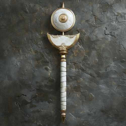 dnd painterly concept, white bronze wand with a primitive golden parabolic dish mounted at the front