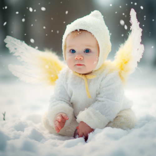 An HD image of a just-born infant with delicate blue-shaded butterfly wings, eyes closed, and wearing a gentle black ribbon around her eyes. The infant lies in a soft, ethereal light, surrounded by a dreamy, serene atmosphere with a gentle background blur to focus on the baby's peaceful face and vibrant wings. Soft lighting highlights the delicate wings and the baby's features, evoking a sense of innocence and calm. --v 5.0 --ar 3:2