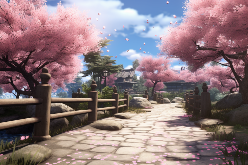 A Peaceful Morning in Japanese Cherry Blossom Garden