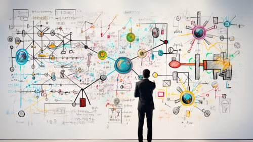 AI Enabled Discrimination on a White Background, an individual standing next to a whiteboard drawing out the biases in AI, focus on the equations and diagrams on the whiteboard, minimalist setting with only the whiteboard and markers, mood of educational urgency, Artwork, ink sketch with simple linework, --ar 16:9 --v 5.2