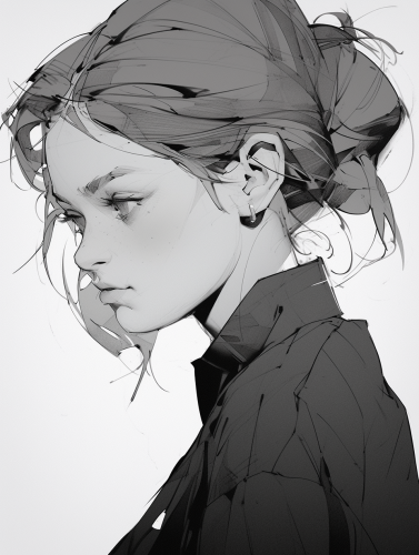 Kristen Stewart style, Sakamoto Shin'ichi style, lineart, monochrome, black and white, line art with pen pressure, ink pen sketch with pen pressure, calligraphy pen with pen pressure, G-pen style with pen pressure, hand-drawing rough line, monochrome style, high contrast --ar 3:4 --s 750 --niji 5 --style expressive