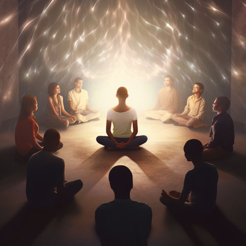 Generate a digital art for A digital art scene depicting a serene individual practicing mindfulness in a tranquil environment, surrounded by soft, calming colors like light grey and pastel shades, symbolizing peace and focus. --ar 1:1