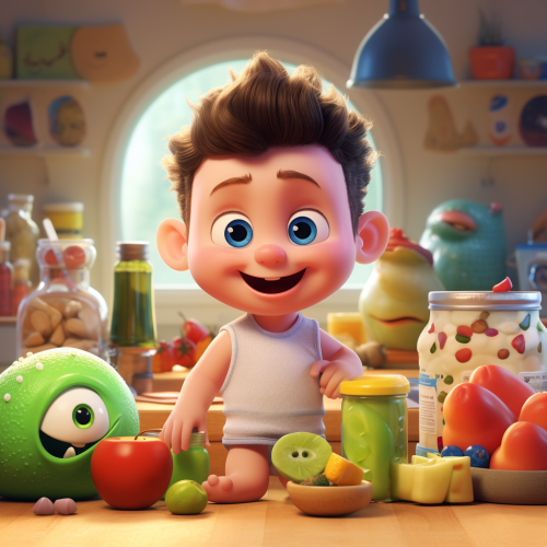 a cute illustration of a 5-year-old Asian girl with brown hair and bangs doing somersaults while a cute 11-month-old baby girl in a bedroom, smiling, watching, children’s book illustration style, cartoon style, watercolor art style