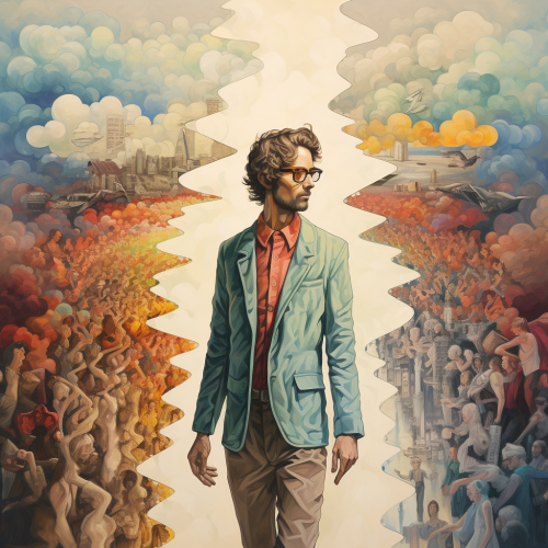 The journey a child takes through adolescence, puberty and adulthood - showing the same individual at different ages of her life, these being: Adolescent. Confused Teenager. Wise Adult. Psychological interpretation of one child's journey through childhood into young adulthood. --ar 16:9