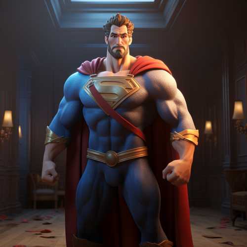 Jafar in Superman suit, determined to go to the rescue, in a dark room, 3D, 16k, Disney, real