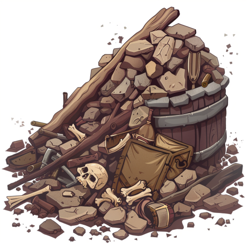 icon of dungeon pile of rubbish with some bone and old broken equipment