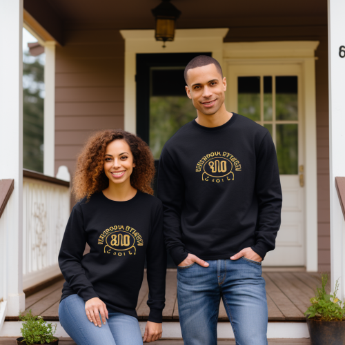 sweatshirt mockup of gilden 18000 blank black sweatshirt on a 30 year old fun handsome female, front and back, standing in a brightly lit farmhouse front porch decorated for spring, quality images 85mm Nikon dslr 8k, image 2000:2000
