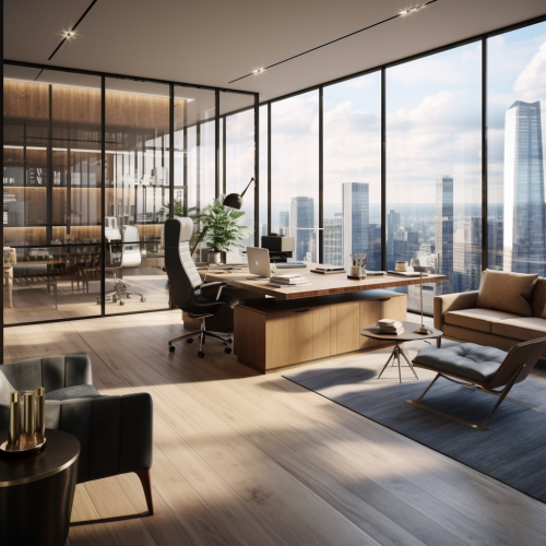 a large private office in a skyscraper, Scandinavian minimalist decor