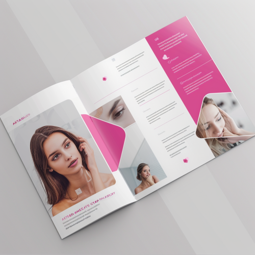 #103475 layout of brochure for anti-scar medicine agent, including ophotos and text, professionally design, pink, grey and white, UX |UI, q4 --v 6.0 --ar 1:1