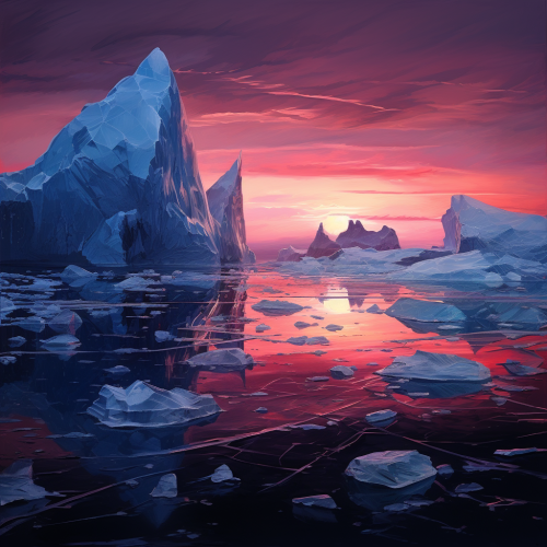 in the style of John Batho,Beach reef ocean icebergs, feature article or story,Bright, cool colors, close-up features,mysterious, Background, Dreamland, Carved, soft lights, moody, Brutal,Lost ruins,Desolation,hyperrealism