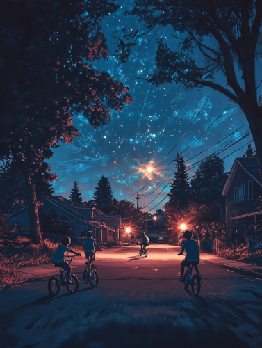 A realistic image of houses with feelings, memories, streetlights.