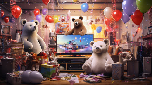Close-Up shot, front view, hyper realistic, winter, morning, sunny, E-sports gaming competition trophies, podiums, festivals, Canon EOS R5 with a 200mm lens, --style raw --v 6.1 --ar 1:1
