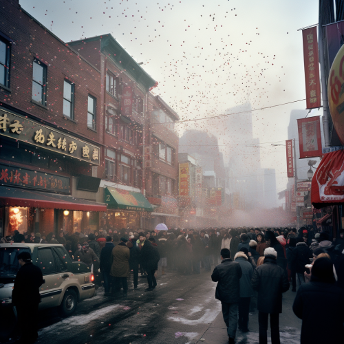 photo of, Celebration China New Year., in Toronto Chinatown, hyper-realistic image, shot on a Nikon 35mm, natural lighting --ar 1:1 --v 5.0