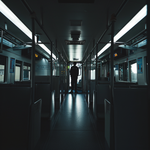a hyper-realistic photo of people running to catch a train in a busy station, people in business attire, on the train is the text "Rat Race" sprayed on in white graffiti,high definition, 4k, --v 6.0
