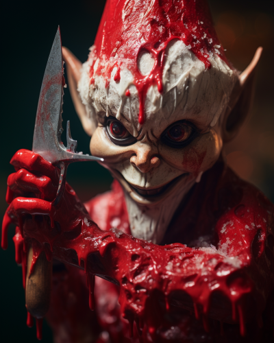 **demon krampus face disfigured, melting wax, spindle sharpe claws, horns on the head with thread like tentacle protruding covered in gelatin, santa claus filthy red clothes demon face, hyper realistic, nikon d850, extremely detailed, 4k resolution, --ar 14:9