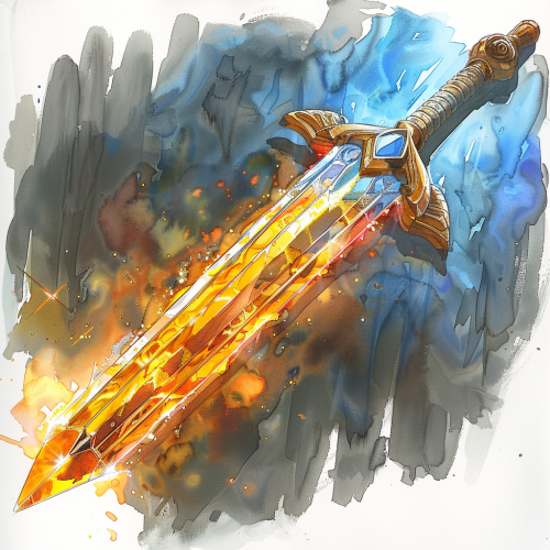 a gothic fantasy weapon called the sun sword, separate blade and hilt, crystal blade glowing with sunlight, ink and watercolour sketch style --v 6.0 --s 250