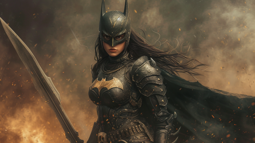 A Retro-Futuristic Female Superhero with Glowing Sword
