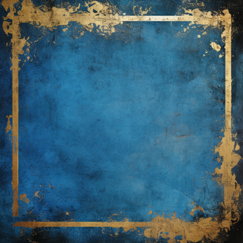 royal blue distressed grunge texture with gold vintage frame at the edges, background