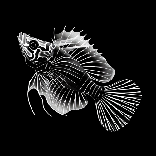 stylized black and white illustration of a mandarin dragonette fish, simple background